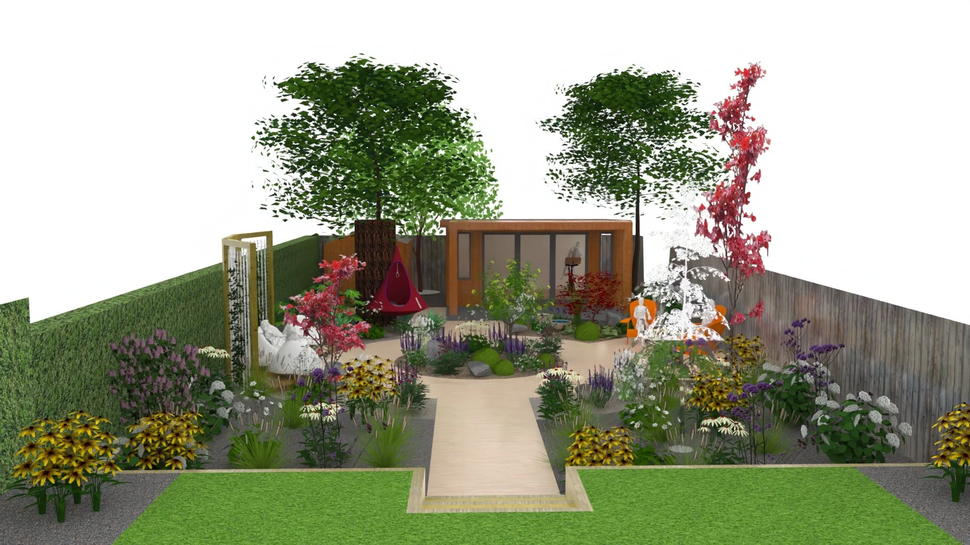 This concept is a reminder that even the most overlooked corners of a garden can be transformed into intentional, beautiful, and usable outdoor rooms — ready to grow with the people who use them.